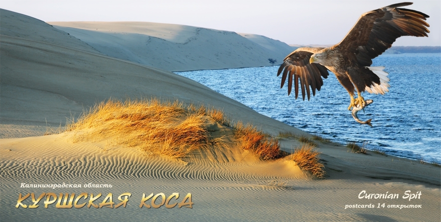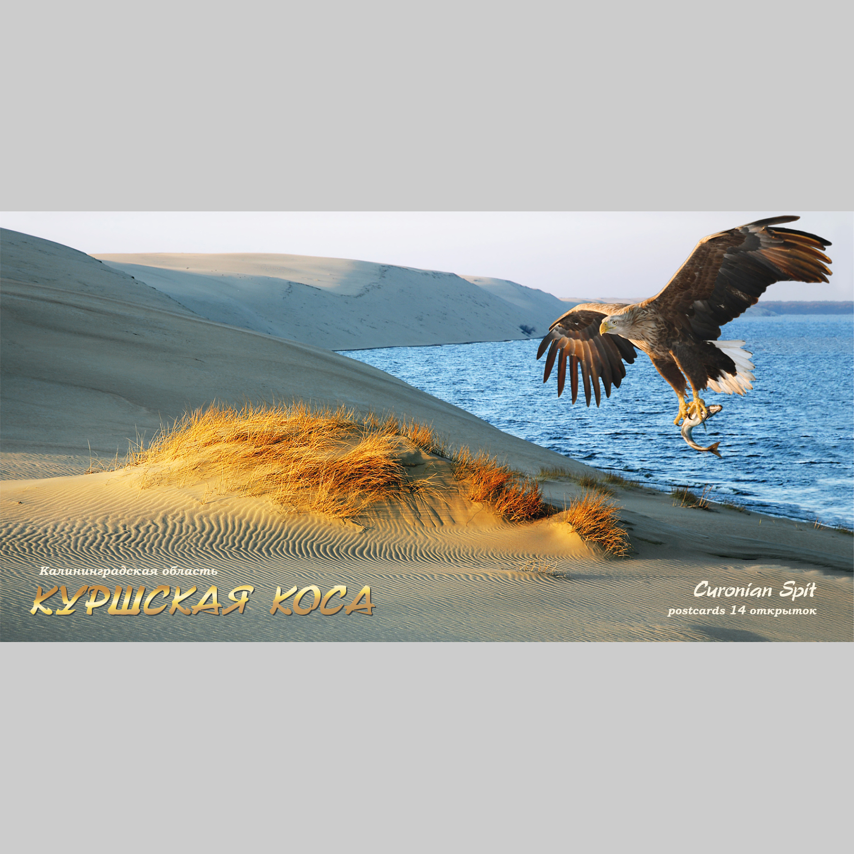 14 удлинённых открыток с видами Куршской косы, с животными обитающими на ней. Русский и английский язык.