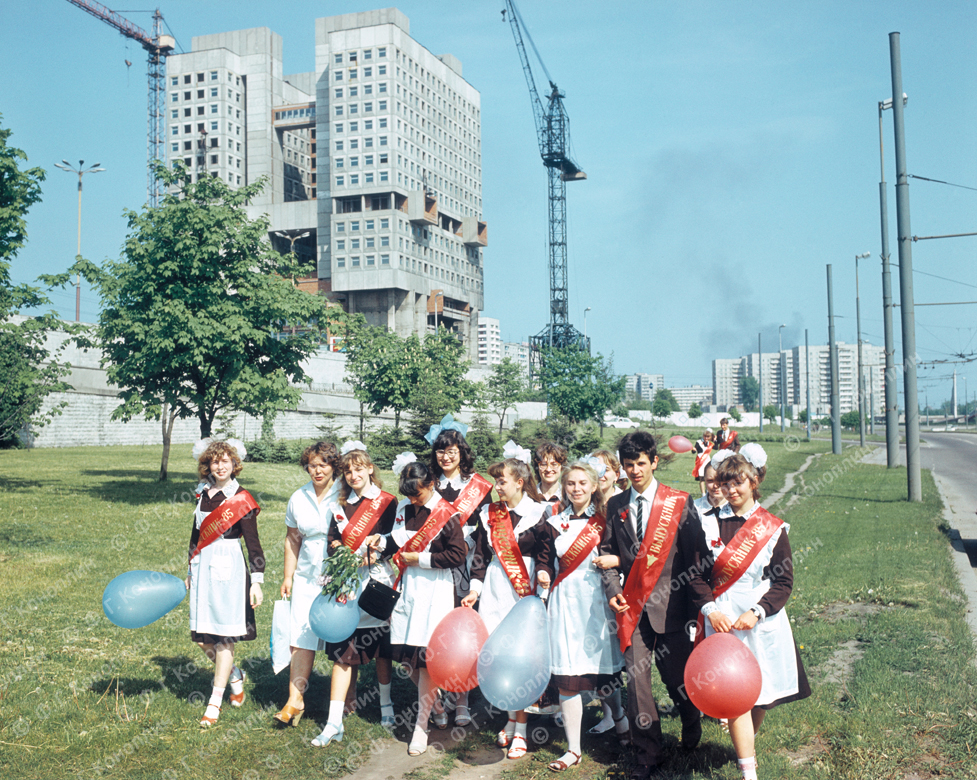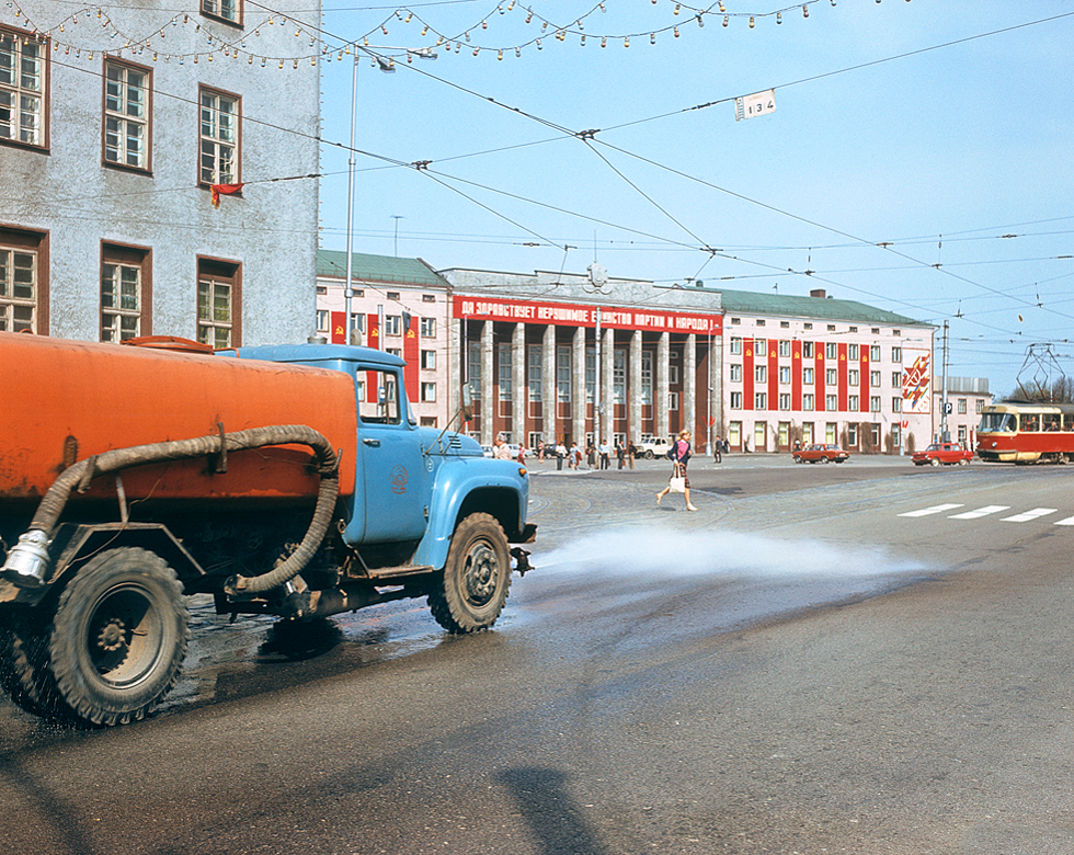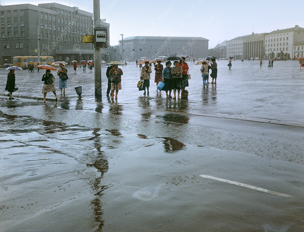 Вид на Ленинский проспект в сторону площади Победы. Справа магазин "Ромашка"