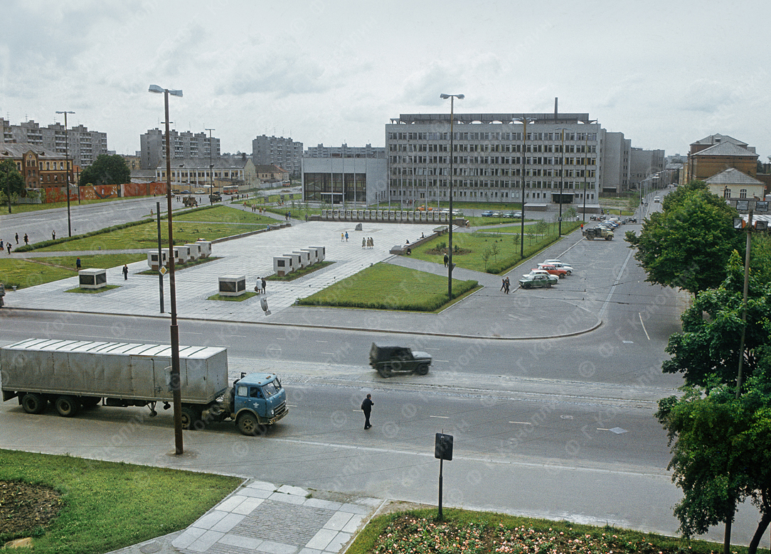 Вид на пересечение Ленинского и Московского проспекта с так называемого дома советов