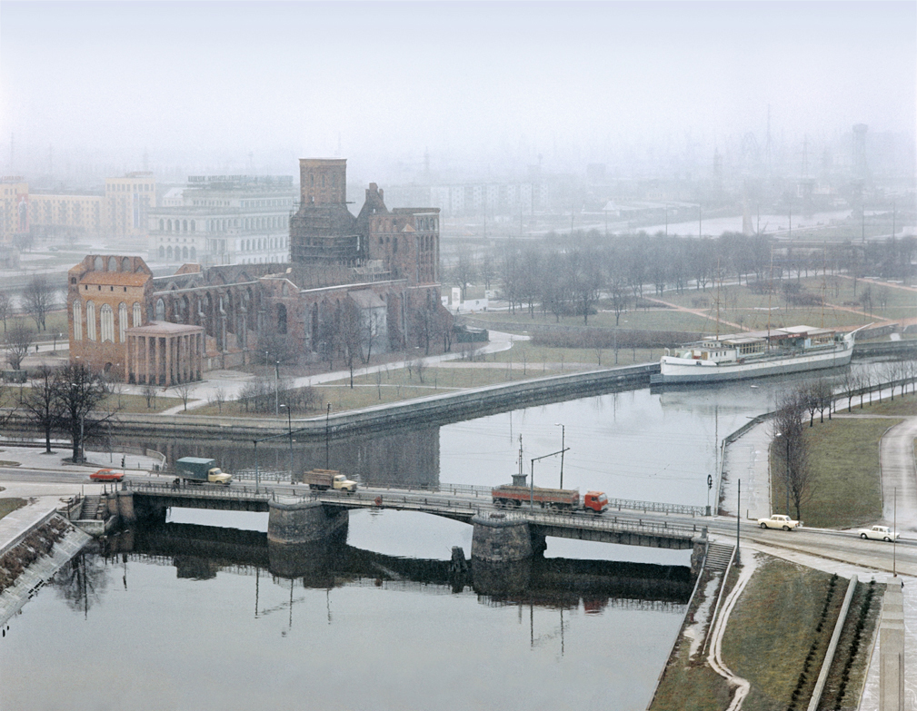 Вид на реку Преголь, Деревянный мост, Кафедральный собор, и на музей изобразительных искусств