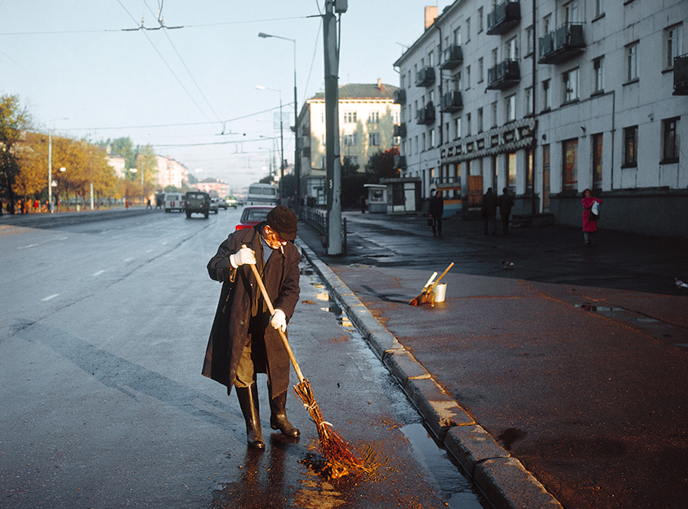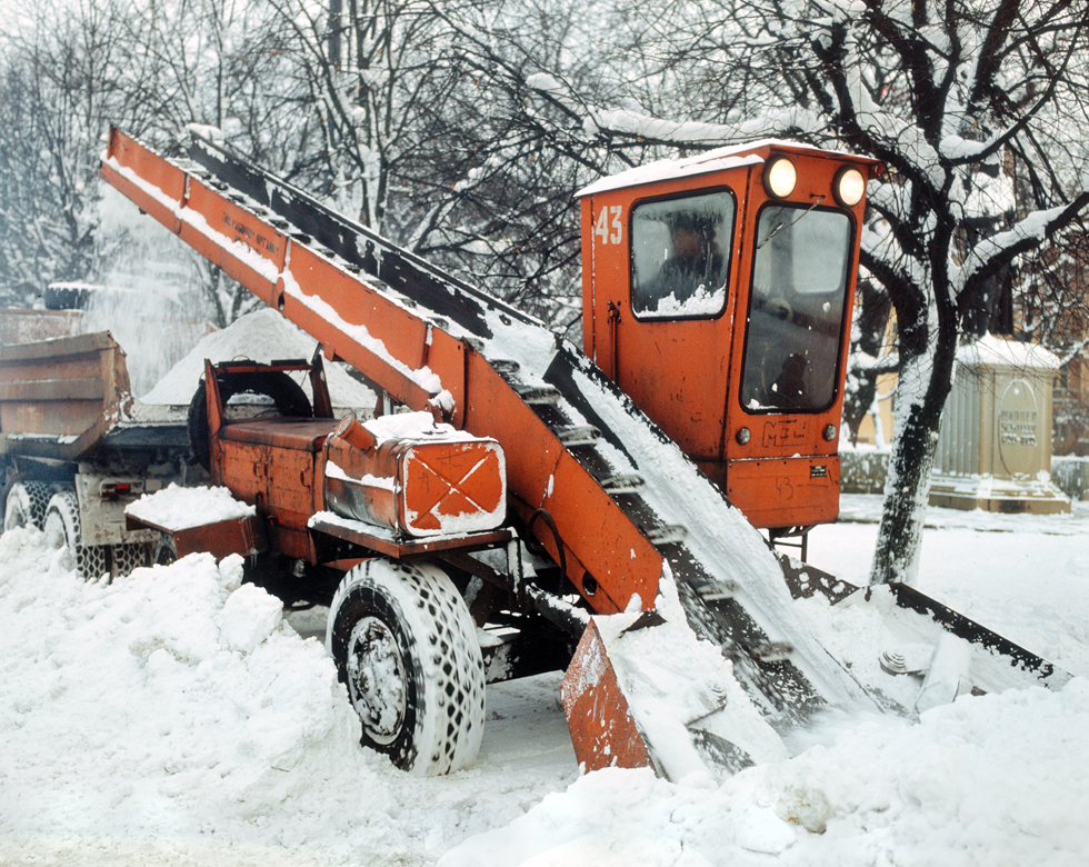 Уборка снега на проспекте Мира. Справа памятник Ф. Шиллеру