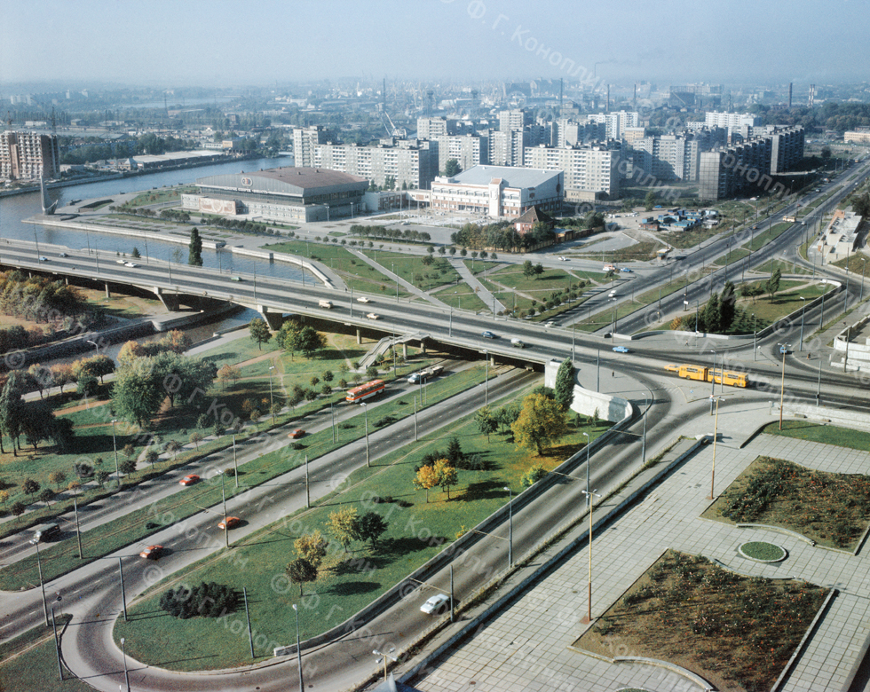 Вид на Эстакадный мост, Московский проспект, реку Преголь и остров Канта